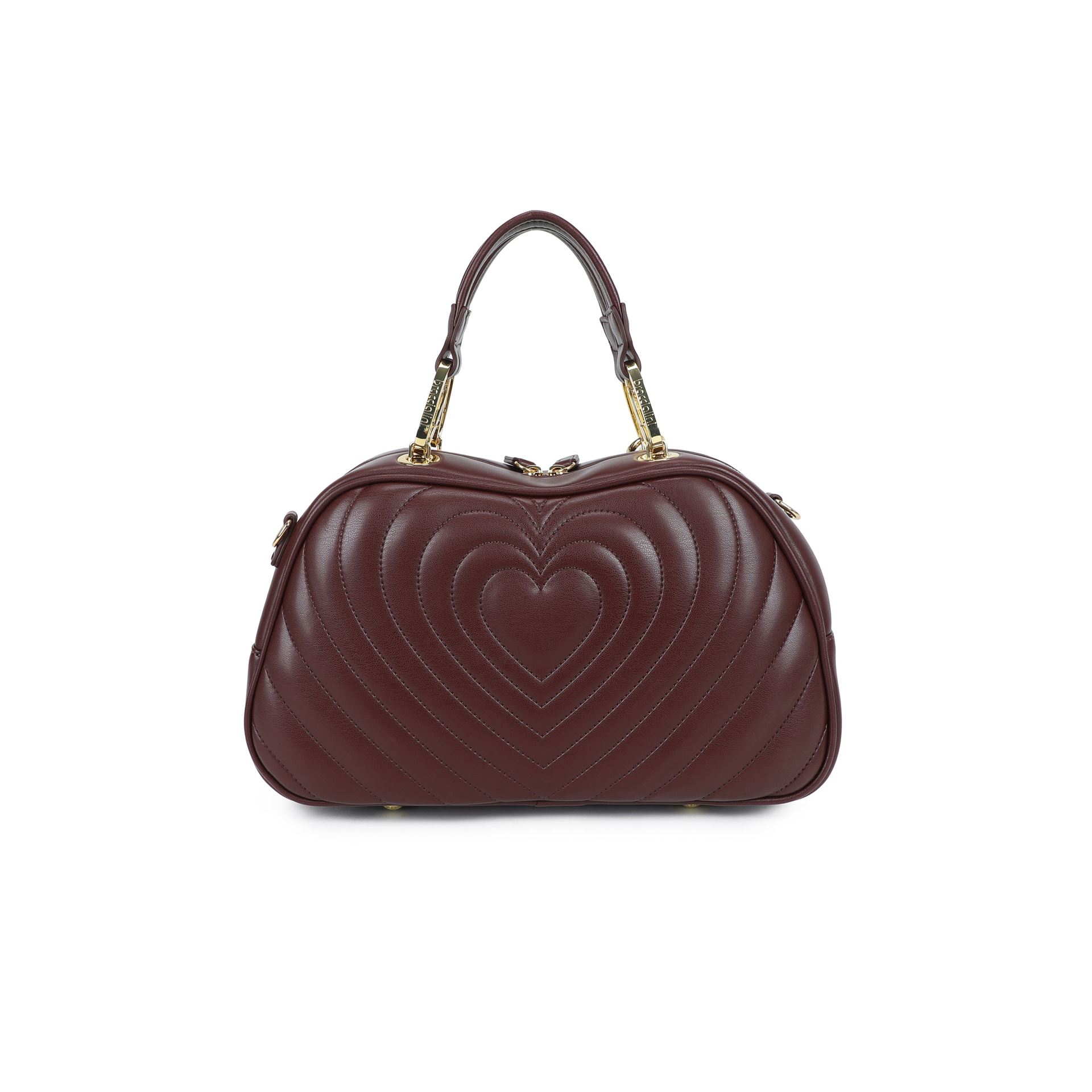 Μπορντό τσάντα satchel από συνθετικό δέρμα με διπλές λαβές και αφαιρούμενο, ρυθμιζόμενο λουράκι ώμου με λογότυπο που επιτρέπει διπλή φορητότητα. Διαθέτει καπιτονέ σχέδιο σε σχήμα καρδιάς που προσθέτει όγκο και χαρακτήρα στην τσάντα. ΛΕΠΤΟΜΕΡΕΙΕΣ Γραμμή: Candy Υλικό: Polysynth Εσωτερικό τσάντας: Δύο εσωτερικές τσέπες, μία με φερμουάρ και μία ανοιχτή Κλείσιμο: Φερμουάρ Χρώμα: Μπορντό Διαστάσεις: 31cm x 18cm x 12cm