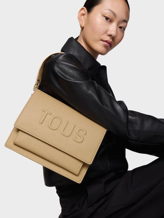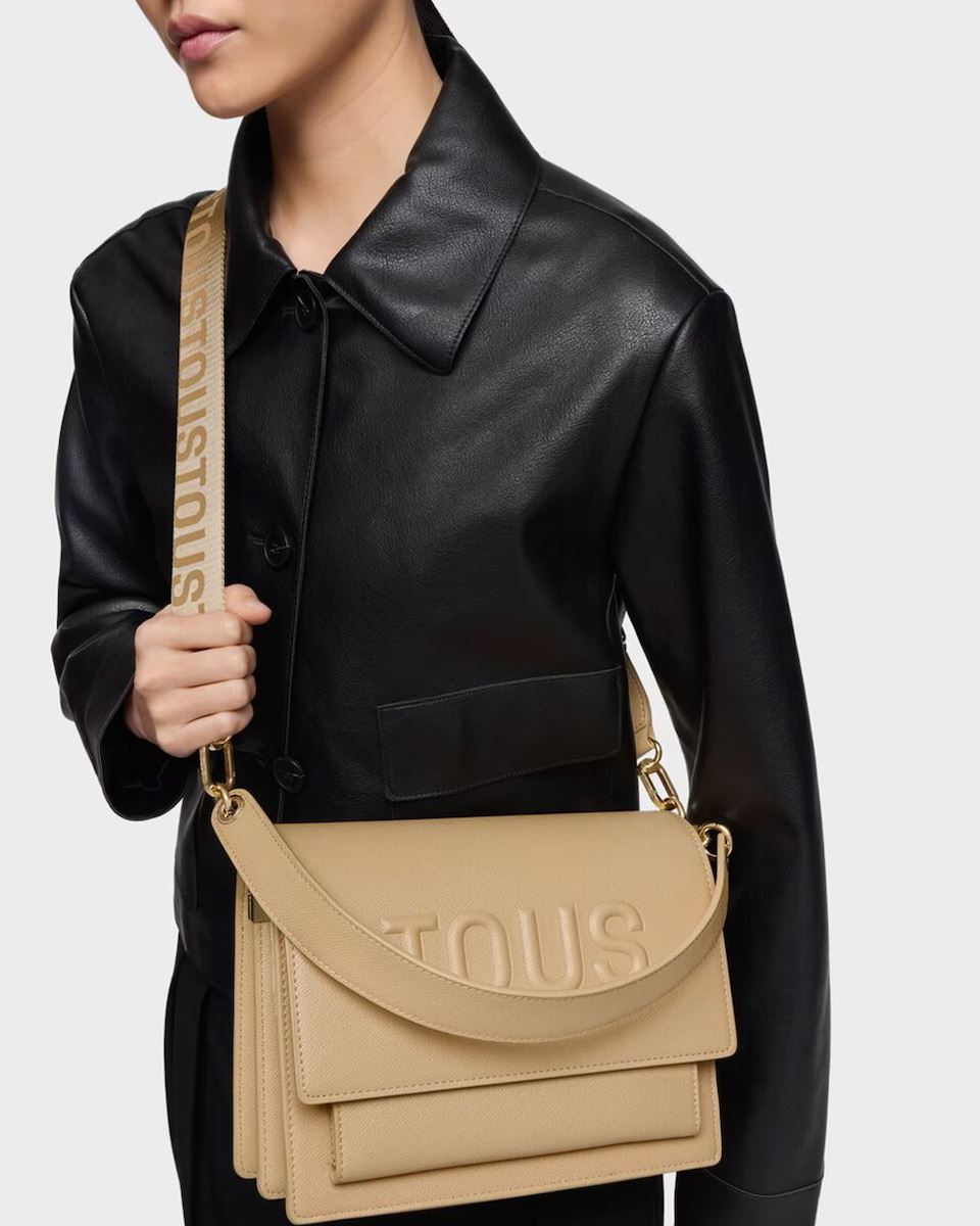 Μεσαίου μεγέθους τσάντα χιαστί Audree TOUS Brenda από πολυουρεθάνη σε μπέζ χρώμα.